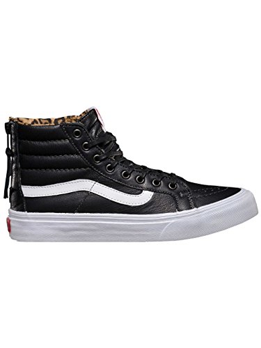 Vans Sk8-Hi Slim Zip Sneakers The Leather Sk8-Hi Slim Zip Sneaker is a slimmed down version of its original. The lace-up high top with a durable leather upper and zipper entry at heel has a leopard print lining. Additional features are the supportive and padded ankle and the Vans vulcanized signature Waffle Outsole.